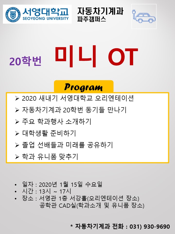 20학년도 자동차기계과 항공서비스과 호텔외식조리과 등 3개 학과가 연합으로 MINI O.T 를 진행하였습니다.