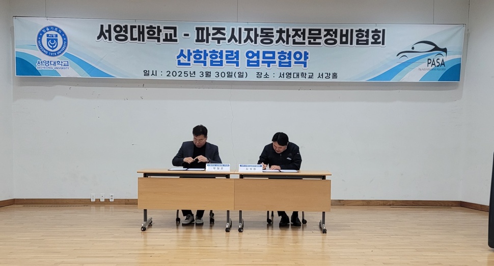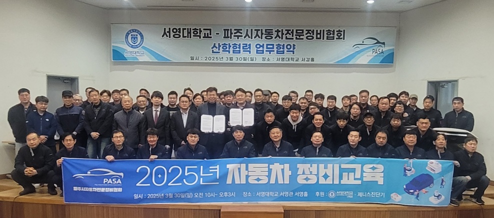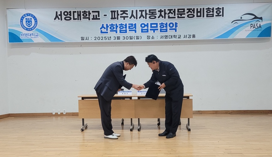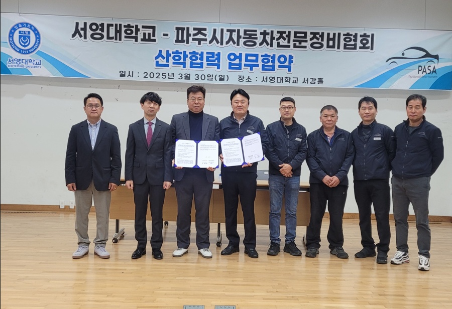 3월 30일 서영대학교 미래자동차과와 파주시 자동차전문정비협회는  산학협력 업무를 체결하고  상호간 "협력 관계"를 구축하였습니다.