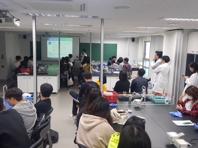 지난 10월 19일(토) 서영대학교 파주캠퍼스 임상병리과는 산학 협약을 맺은 고려대학교 분자진단연구회와 함께 서울시 도봉구 관내 6개 고등학교에서 130여명의 학생들이 참여한 가운데 도봉구와 함께하는 ‘생명과학체험교실’을 개최하였다. 청소년 ‘생명과학 체험 프로그램’은 일반 고등학교의 기자재로는 체험이 어려운 ‘DNA 지문분석 (DNA finger printing)’ 기법등과 같은 실험을 대학교 실험실에서 직접 체험해 볼 수 있도록 하는 기회를 통해 청소년 스스로의 자신의 적성을 찾아가고, 4차 산업혁명에 대응할 수 있도록 하기 위해 마련됐다. 특히, 서영대학교 파주캠퍼스 임상병리과 이지웅 학과장은 “바이오, 인공지능, 빅데이터, 의생명과학 등의 융합이 어우러지는 4차 산업혁명 시대를 맞이하면서 학생들이 직접 다양한 실험을 경험 할 수 있는 ‘청소년 생명과학 체험 프로그램’을 통해 과학기술을 선도할 수 있는 인재로 성장하는 기회가 되길 바란다며 그러한 인재들이 꿈을 키워 나갈수 있는 서영대학교 파주캠퍼스 입시 홍보 및 임상병리과의 비전에 대해 강의하였다.