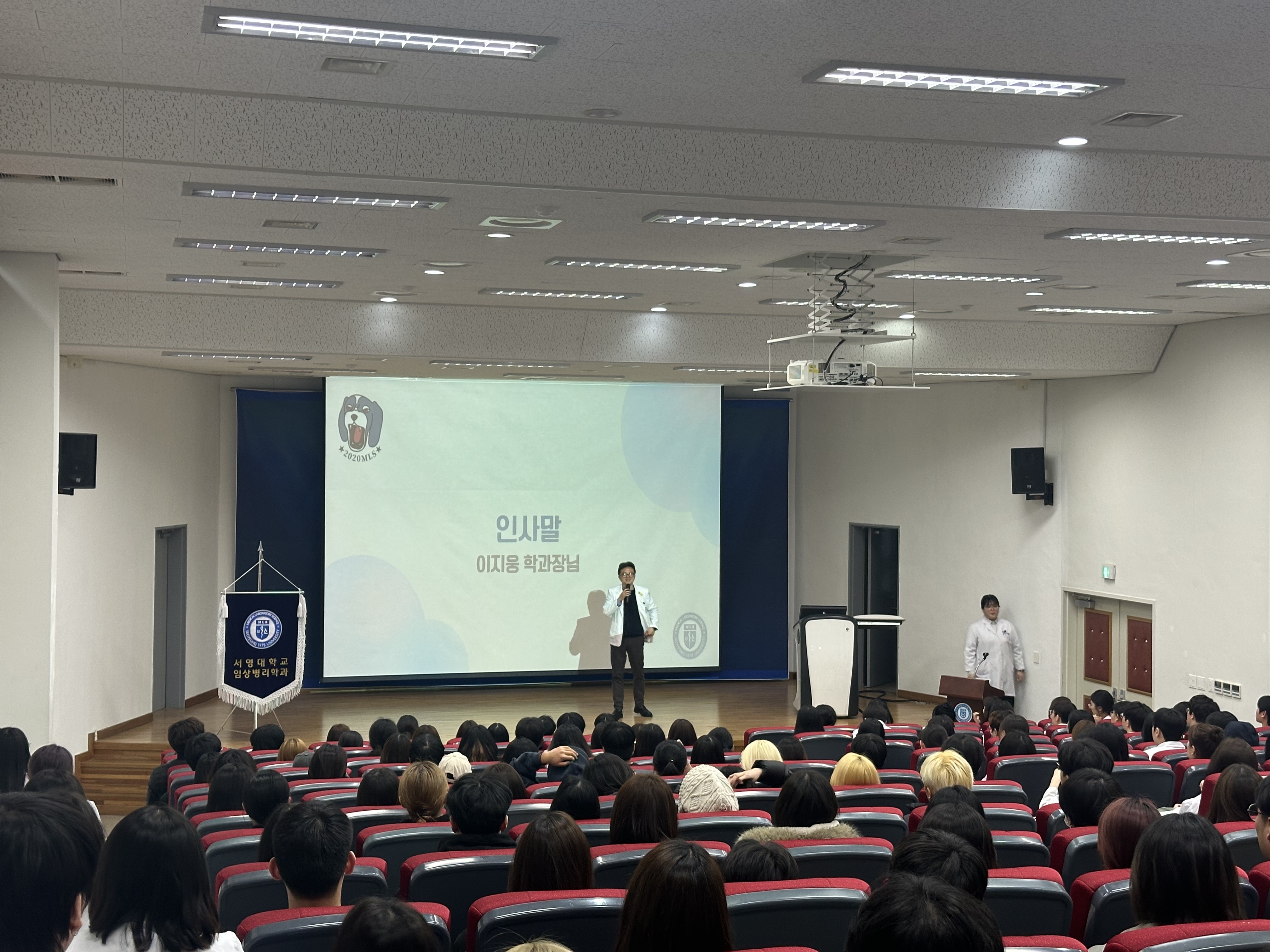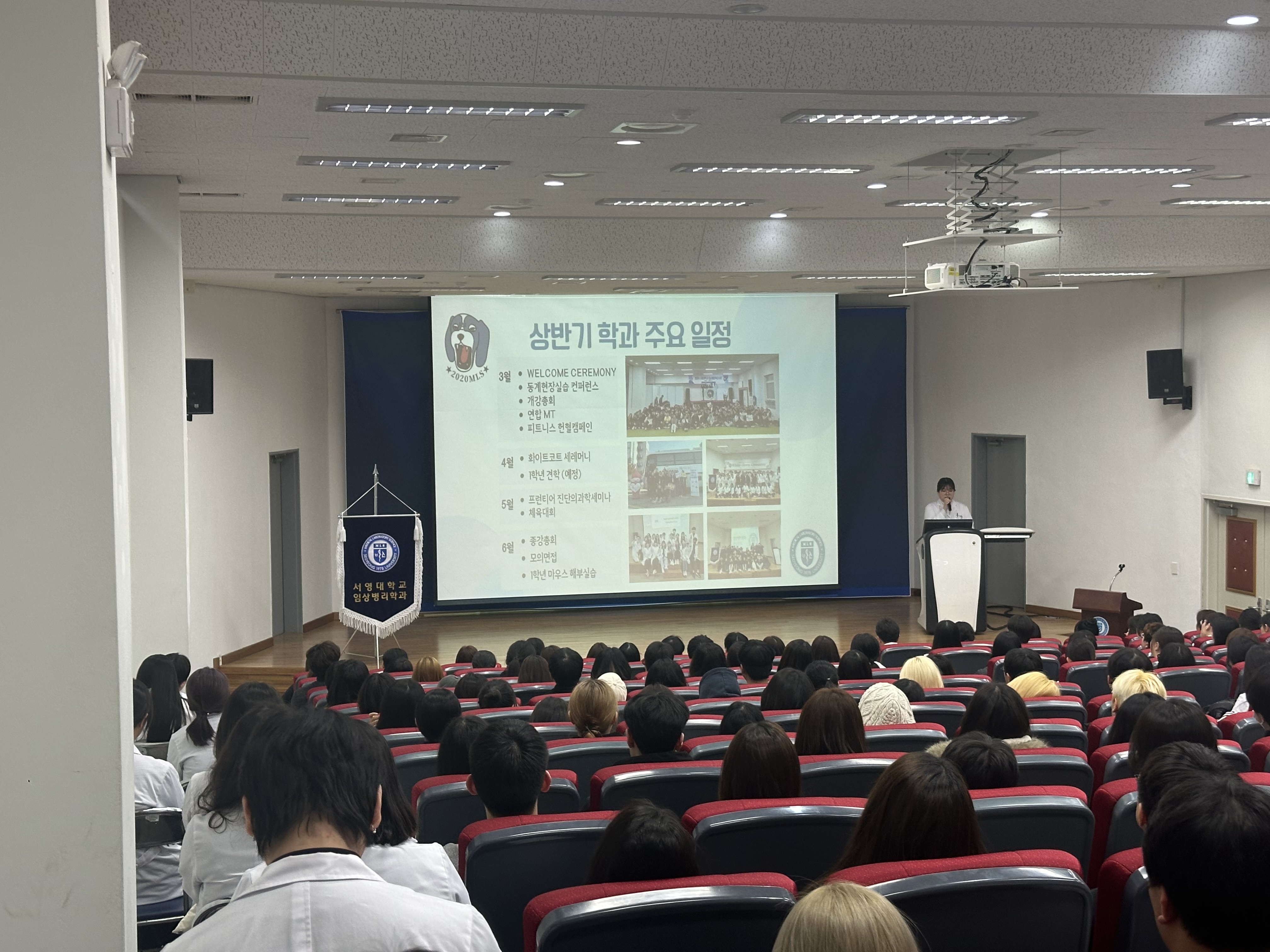 지난 3월 5일, 최강임상병리학과의 2026학년도 1학기 개강총회가 우리 대학 서강홀에서 열렸다. 이번 개강총회는 학과의 모든 학년과 교수진이 한자리에 모이는 자리로, 신입생부터 선배들까지 서로 인사를 나누며 새 학기의 시작을 함께하는 뜻깊은 시간이었다. 개강총회는 최강임상학생회 이현진 학회장(24학번)의 사회로 진행되었으며, 이지웅 학과장이 2026년도 학과 운영 방안을 발표하며 앞으로의 학과 발전 방향과 계획을 공유했다. 이어 선후배 간의 상호 인사를 나누는 시간도 마련되었다. 또한 1학기에 진행될 다양한 학과 프로그램들이 소개되며 학생들의 기대감을 높였다.