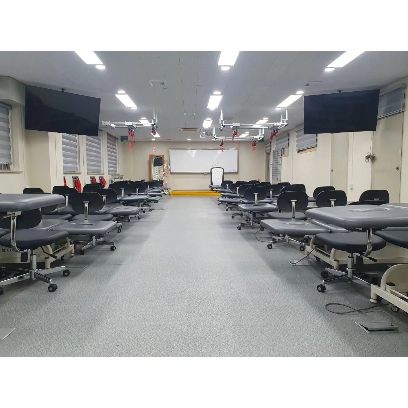 전동테이블 전선매립, TV설치, 슬링 도입 등 물리치료 수업과 실습에 최적화될 수 있도록 광주권 내 최고 시설로 개선하였고, 많은 물리치료 학회 교육이 현재 저희 학교 실습실에서 열리고 있으며 만족도 또한 매우 높습니다.