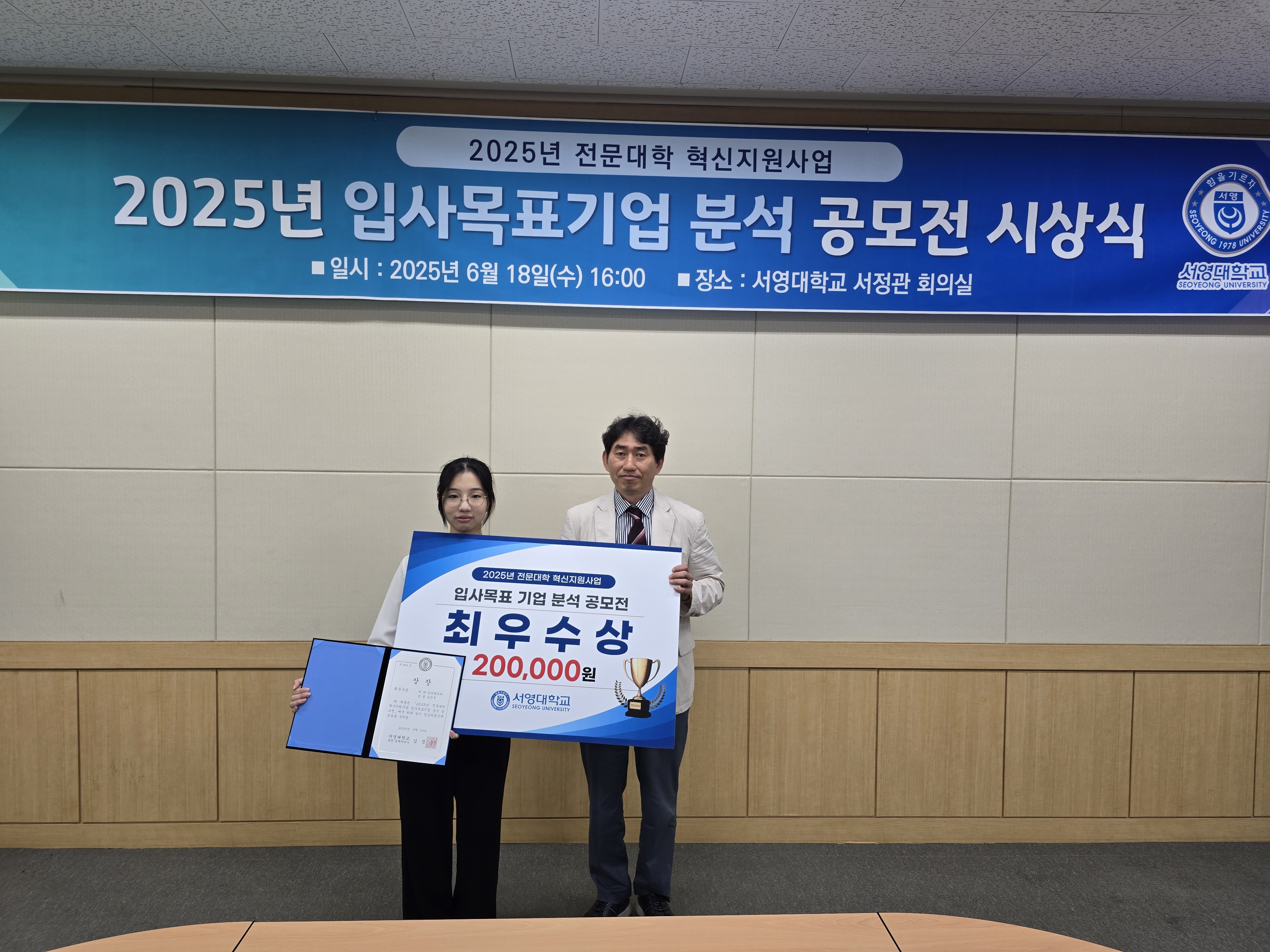 2025년 서영대학교 입사목표기업 분석 공모전 시상식 개최